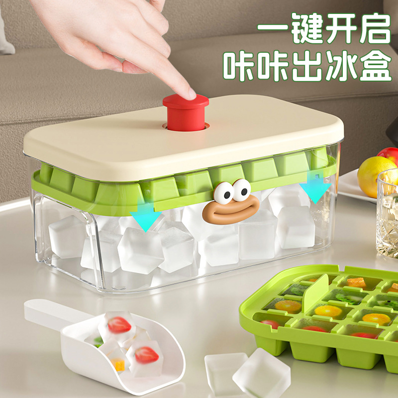 Ice Cube Ice Making Mold Household Food Grade Refrigerator Ice Storage Box Double-Layer Covered Push-Type Large-Capacity Ice Tray Artifact