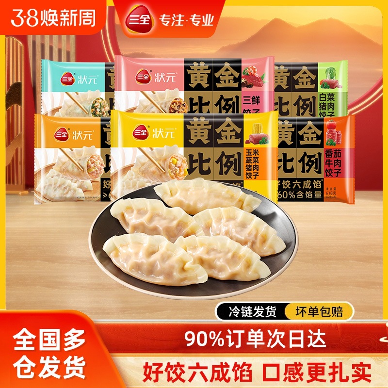 Sanquan Golden Ratio Steamed Dumplings Fried Dumplings Large Dumplings Tomato Beef 618g*6 Bags Breakfast Semi-Finished Frozen Dumplings