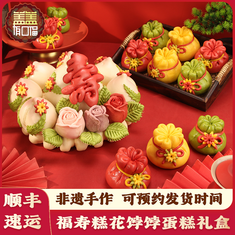 Jiaodong Traditional Handmade Flower Steamed Buns and Longevity Cakes 2.5kg Yantai Specialty Birthday and Longevity Pasta Gift Box Pastry Category