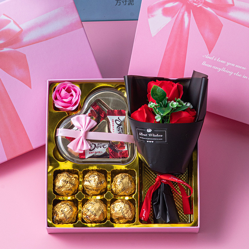 Gift Box Snacks Chocolate Valentine's Day Gift for Girlfriend and Wife Birthday Romantic Bouquet Gift Factory Supply Chain Wholesale