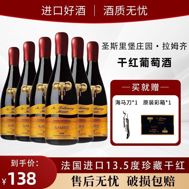 French Imported 13.5 Degree Dry Red Wine Red Wine Full Box High-End Gift Box 6 Pieces Pearl Cotton Holiday Gift