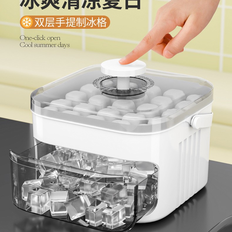 One-Click Push-Type Ice Tray Ice Cube Mold Household Ice Box Storage Frozen Ice Cube Model Household Easy Demoulding Quick Freezing