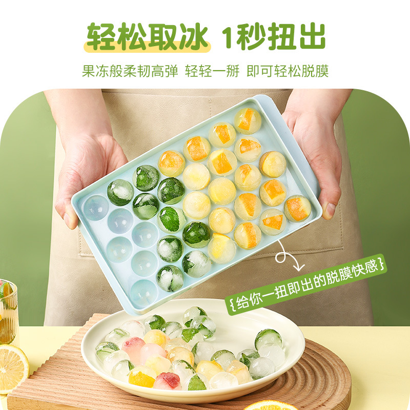 Ice Tray Spherical Ice Cube Mold 33 Grids Food Grade Plastic Round Summer Household Refrigerator Plastic Ice Cube Box with Lid