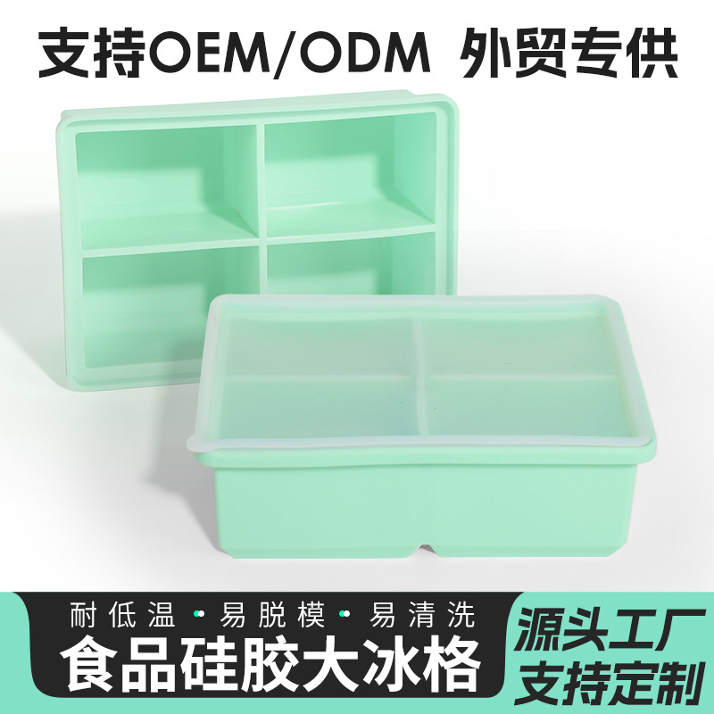 Specialized for Foreign Trade, Large 4-Hole Food-Grade Silicone Ice Tray for Home Use with Lid, DIY Tool for Making Homemade Ice Cubes and Quick-Freezing Ice