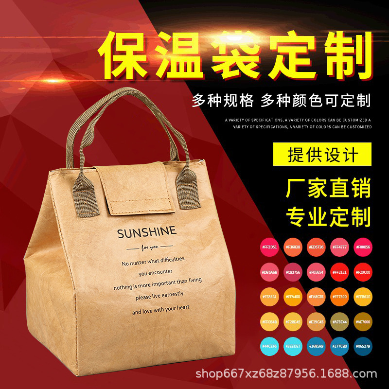 Dupont Paper Insulated Bag Custom Kraft Paper Bag Japanese-Style Bento Lunch Box for Office Workers Portable Insulated Bag with Logo Printing