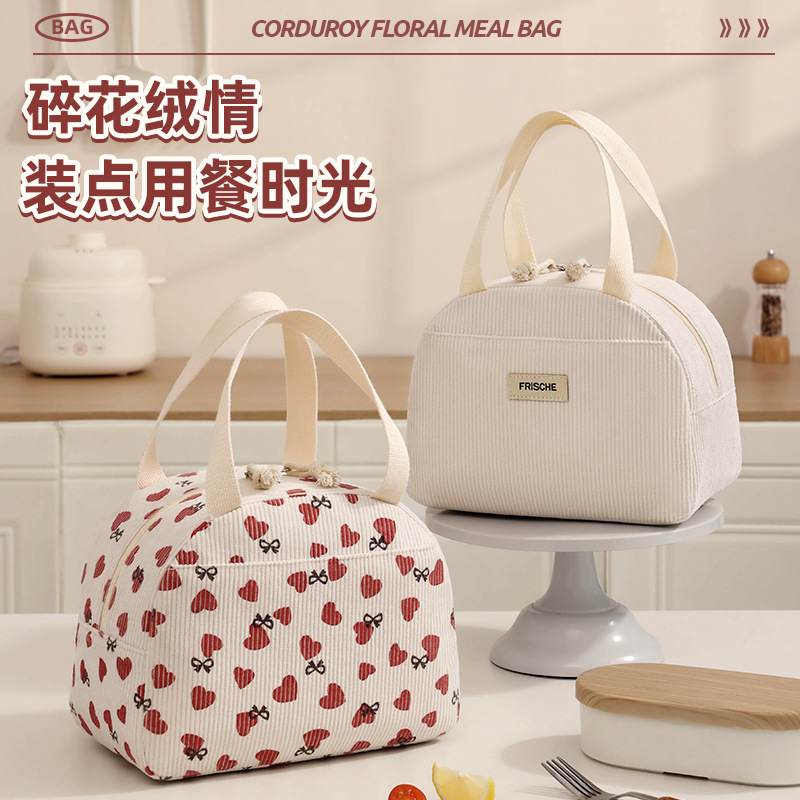 Amazon New Corduroy Strawberry Large Capacity Lunch Bag for Business Travel Spring outing Picnic Ice Bag Work Lunch Box Bag