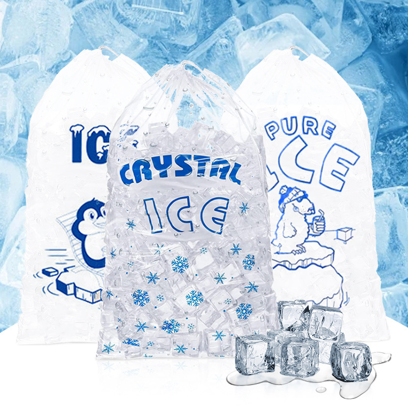 20-Pound Transparent Food-Grade Pe Drawstring Ice Bag Wholesale Ice Cube Bag Disposable Ice Bag
