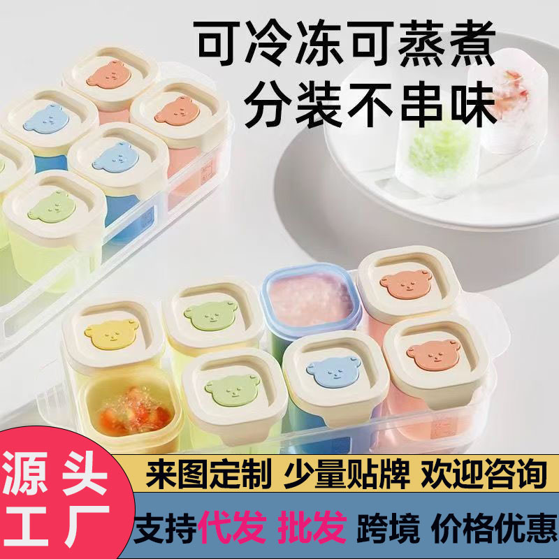 Baby Frozen Food Supplement Grids Independent Packaging Box Silicone Baby Ice Meat Puree Preservation Storage Steamable Mold Storage
