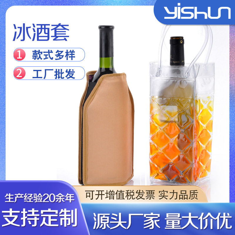 Factory supply gel nylon ice wine set red wine ice set pvc ice wine bag cold gel ice wine set ice bag