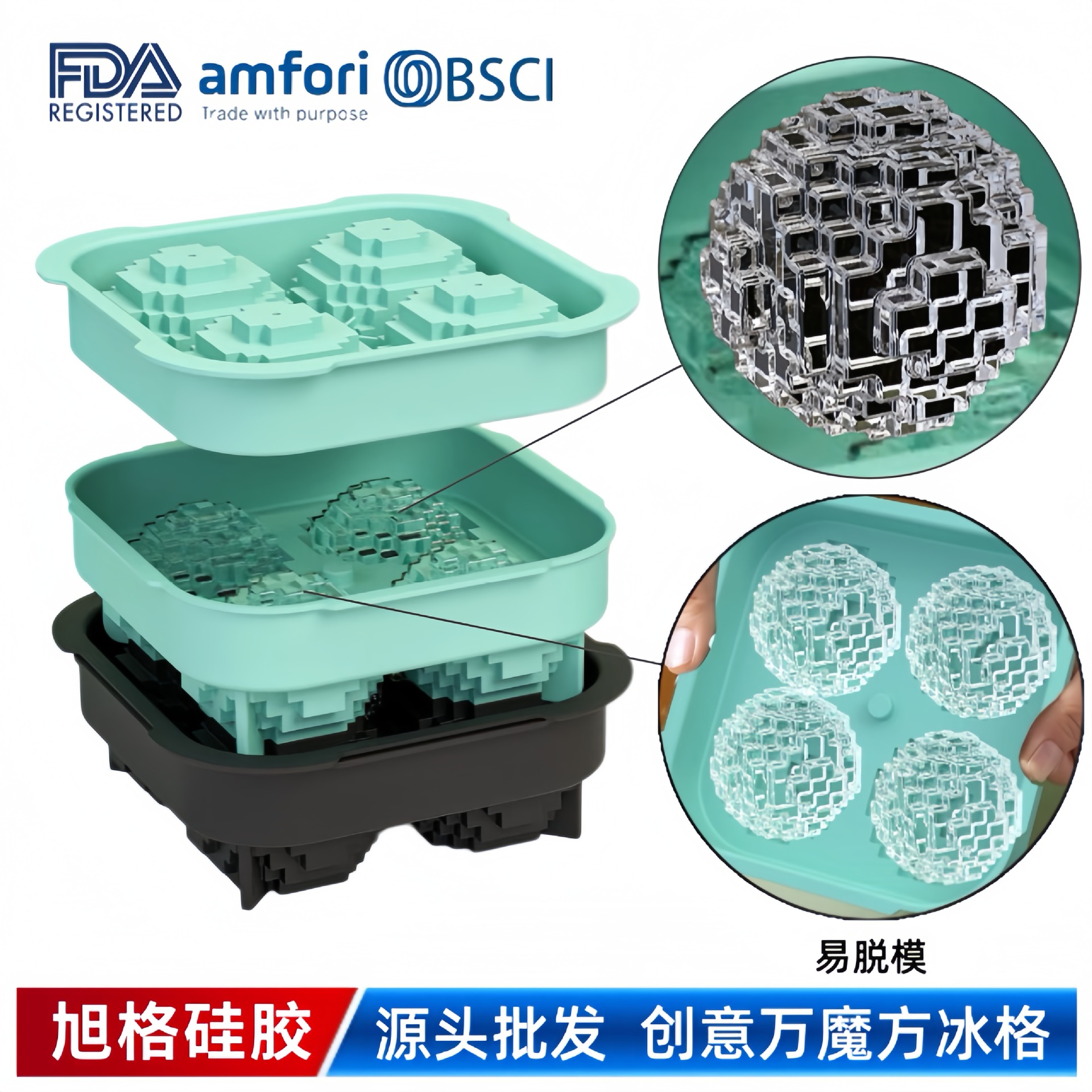 New creative Rubik's cube ice whisky with lid silicone ice box mold commercial home bar ice box