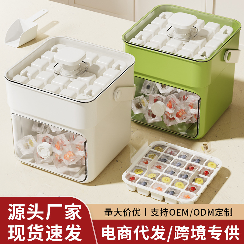 New Ice Tray Push-Type Plastic Ice Cube Mold Food-Grade Easy-Release Ice Cube Box Ice Box Ice Making Film