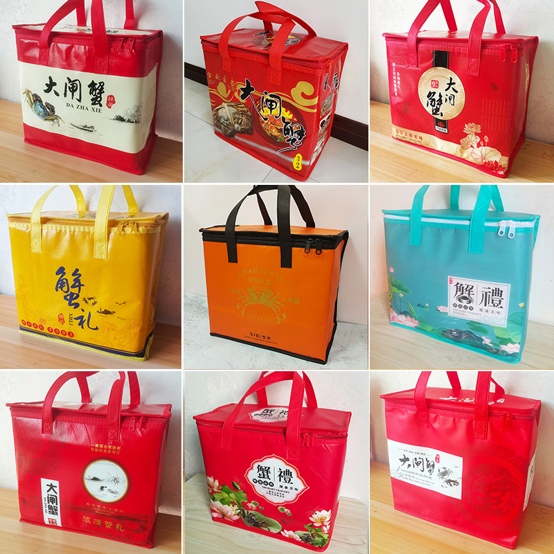 In-Stock Yangcheng Lake Hairy Crabs Aluminum Foil Insulation Bag Portable Gift Bag Fresh-Keeping Thickened Cooler Bag Universal Crab Packaging
