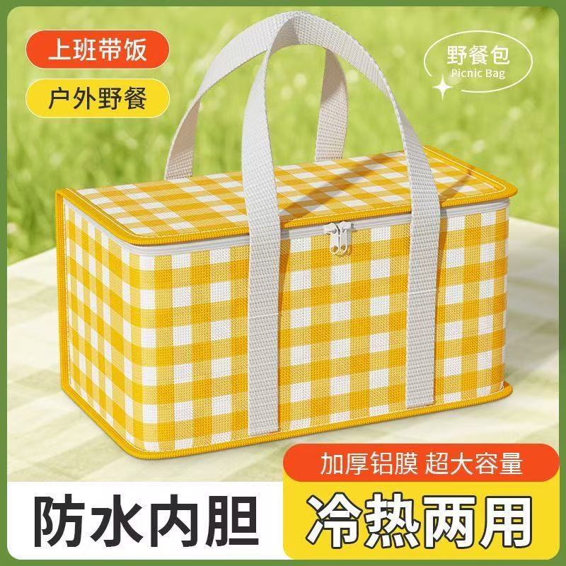 Oxford cloth insulation bag portable Plaid lunch bag large capacity lunch box bag fresh portable insulation bag wholesale