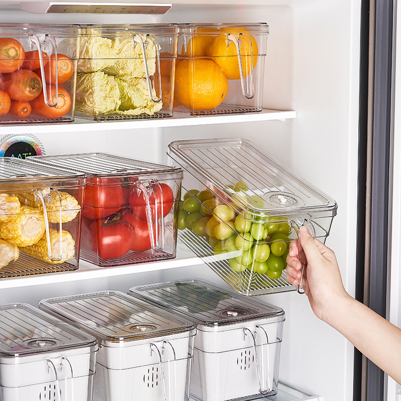 Kitchen Compartment Drainable Storage Box Refrigerator Vegetable and Fruit Sealed Crisper with Handle Refrigeration Organization Artifact