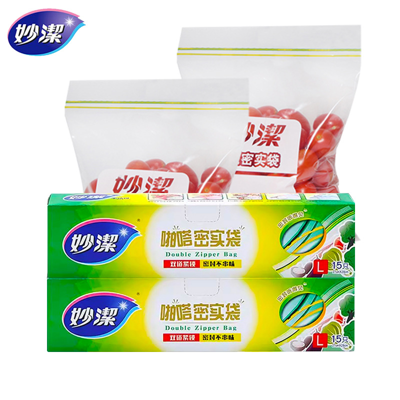Miaojie Airtight Bags, Sealing Bags, Fresh-Keeping Bags, Household Food Bags, Thickened Food Bags for Refrigerator and Freezer, Double Zipper Self-Sealing Bags