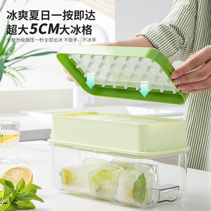 Amazon Frozen Ice Cube Mold Box Press Ice Tray Refrigerator Ice Box Storage Box Food Grade Large Capacity Cross-Border Foreign Trade