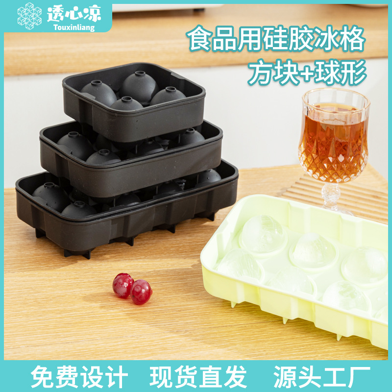 Press Ice Cube Film Large Food Grade Silicone Ice Tray for Stall Use Spherical Frozen Food Supplement Ice Box Wholesale