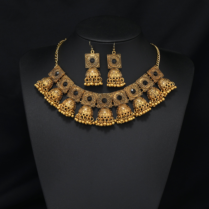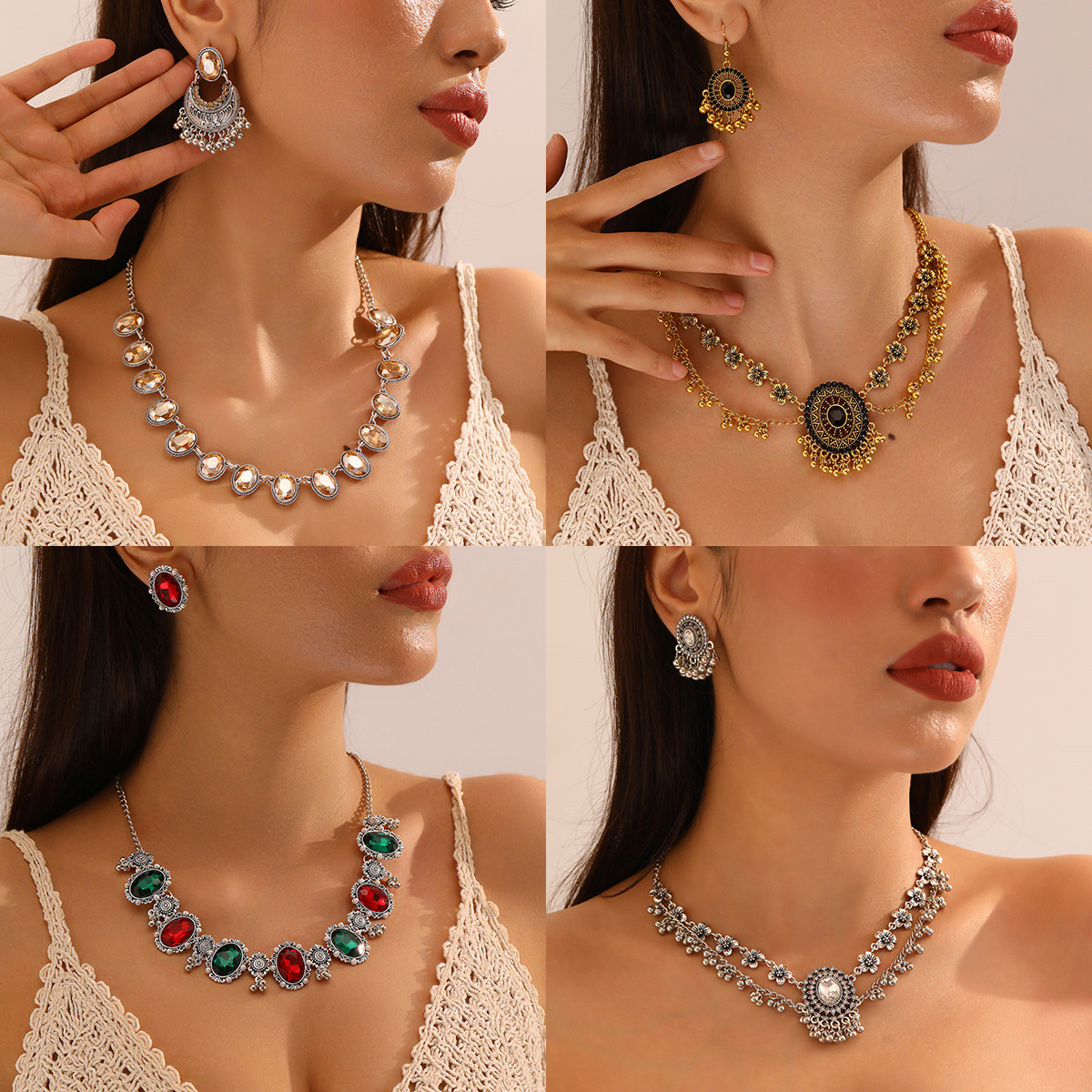 European and American Retro Distinctive Clavicle Chain Short Temperament Indian Ethnic Style Necklace Bohemian Earrings suit Women