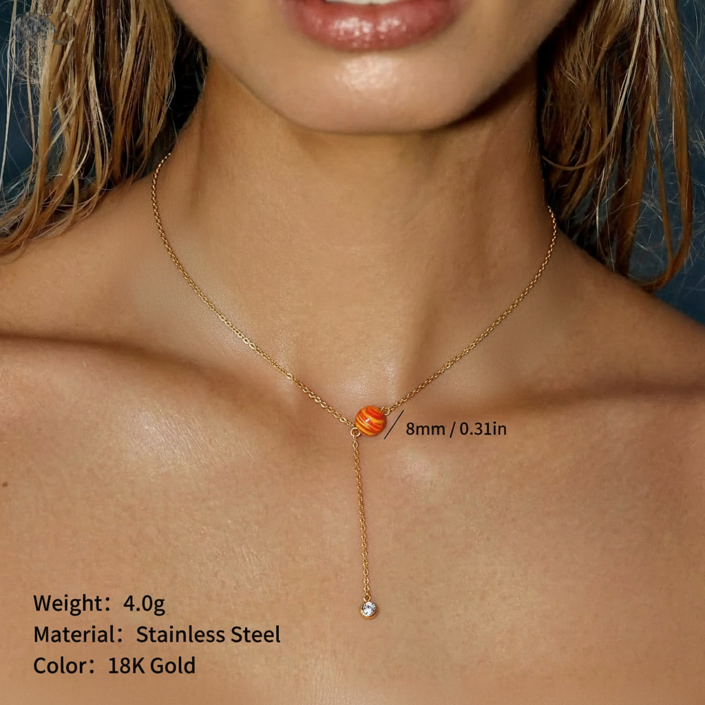 Cross-Border Natural Stone Planet Titanium Steel Necklace Niche Design Color Stone Pendant Ins Style Long Tassel Clavicle Chain