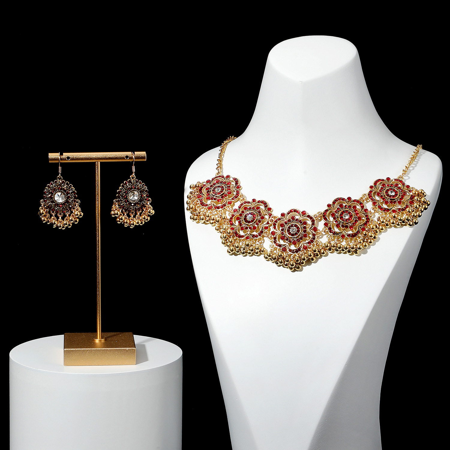 Indian classic vintage jewelry alloy diamond flower design necklace earrings set Yunnan ethnic jewelry