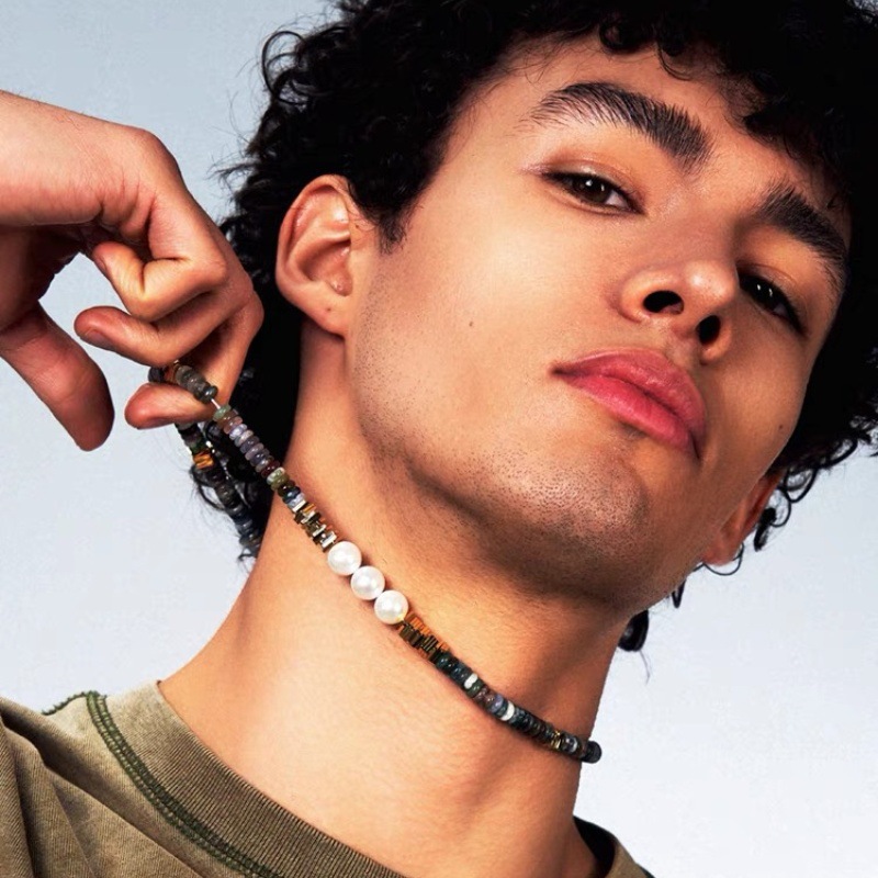 New Chinese Style Natural Stone Agate Bracelet Beaded Shellfish Pearl Necklace Unisex Hip-Hop Tiger Eye Stone Necklace
