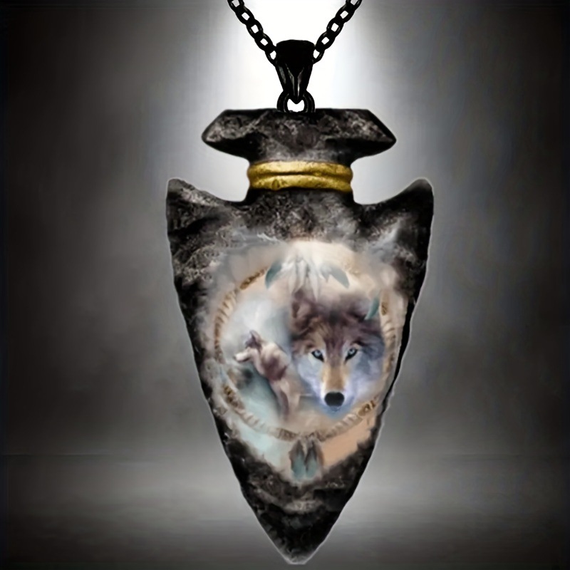 Temu cross border new punk hip hop geometric triangle pendant necklace Indian animal wolf totem wolf head necklace