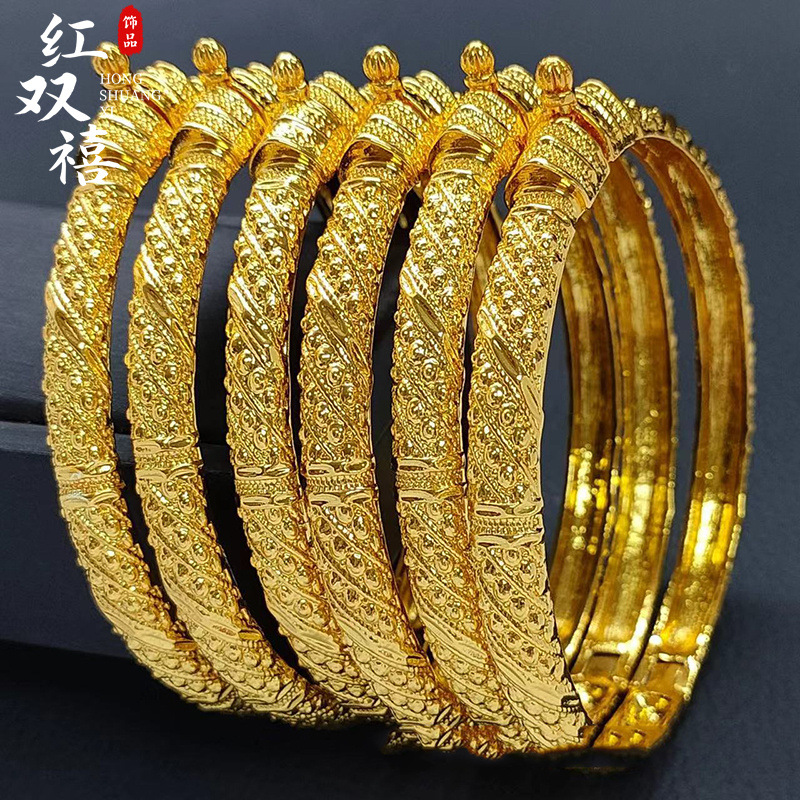 Hot Sale Copper Plated 24K Gold Bracelet Dubai Bride Indian Light Luxury Women's Wedding Sand Gold Bracelet Jewelry Wholesale