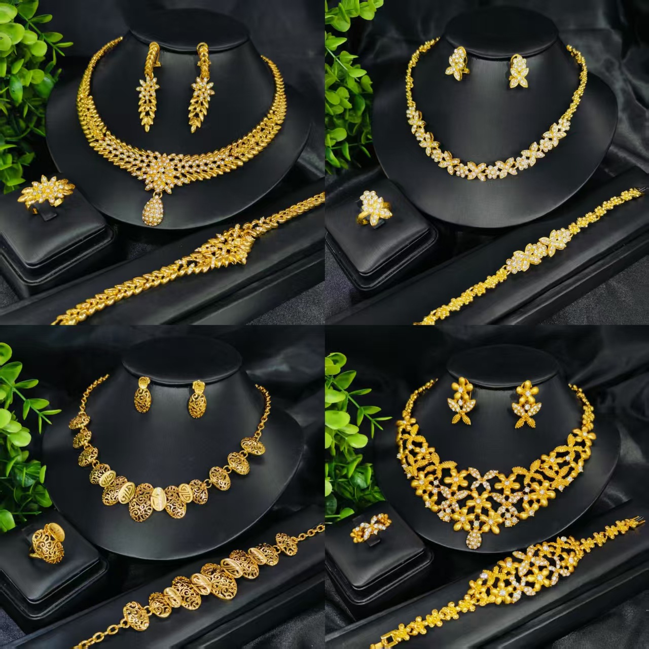 Cross-border Europe and America Dubai 18K inlaid rhinestone necklace earrings ring bracelet India bridal jewelry suit
