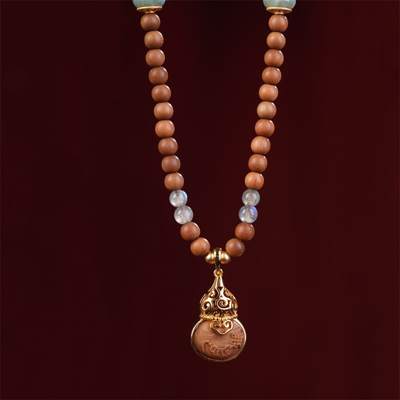 Indian Old Mountain Sandalwood Gourd Pendant Necklace Sandalwood Vintage National Style High-end Exquisite Collocation Chain Necklace
