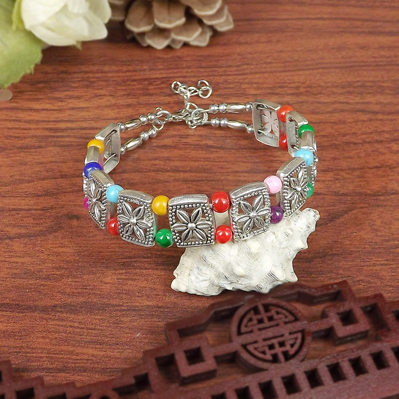 Exotic Miao Silver Xizang Silver Hand Jewelry Retro Jewelry Indian Style Ancient Silver Accessories Travel Photo Ladies Bracelet