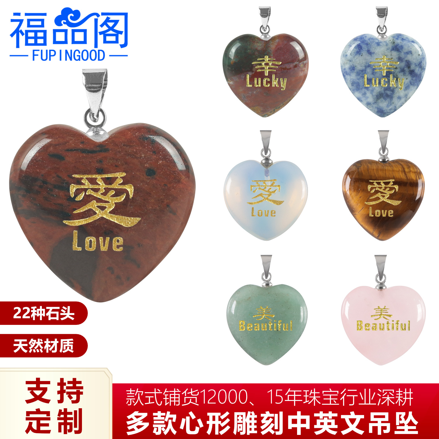 New Creative Lettering Lucky Stone Natural Crystal Heart-Shaped Pendant Necklace Valentine's Day Fashion Gift DIY Necklace