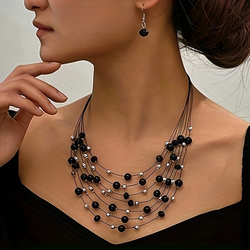 Jewelry Southeast Asian Explosions Indian Ethnic Style Vintage Gem Beads Jewelry 2 Pieces suit Earrings Necklace