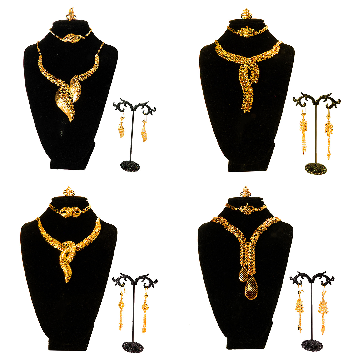 Cross-Border Hot Selling Dubai 24K Gold Jewelry Set Indian Bride Wedding Necklace Bracelet Earrings Ring Four-Piece Set