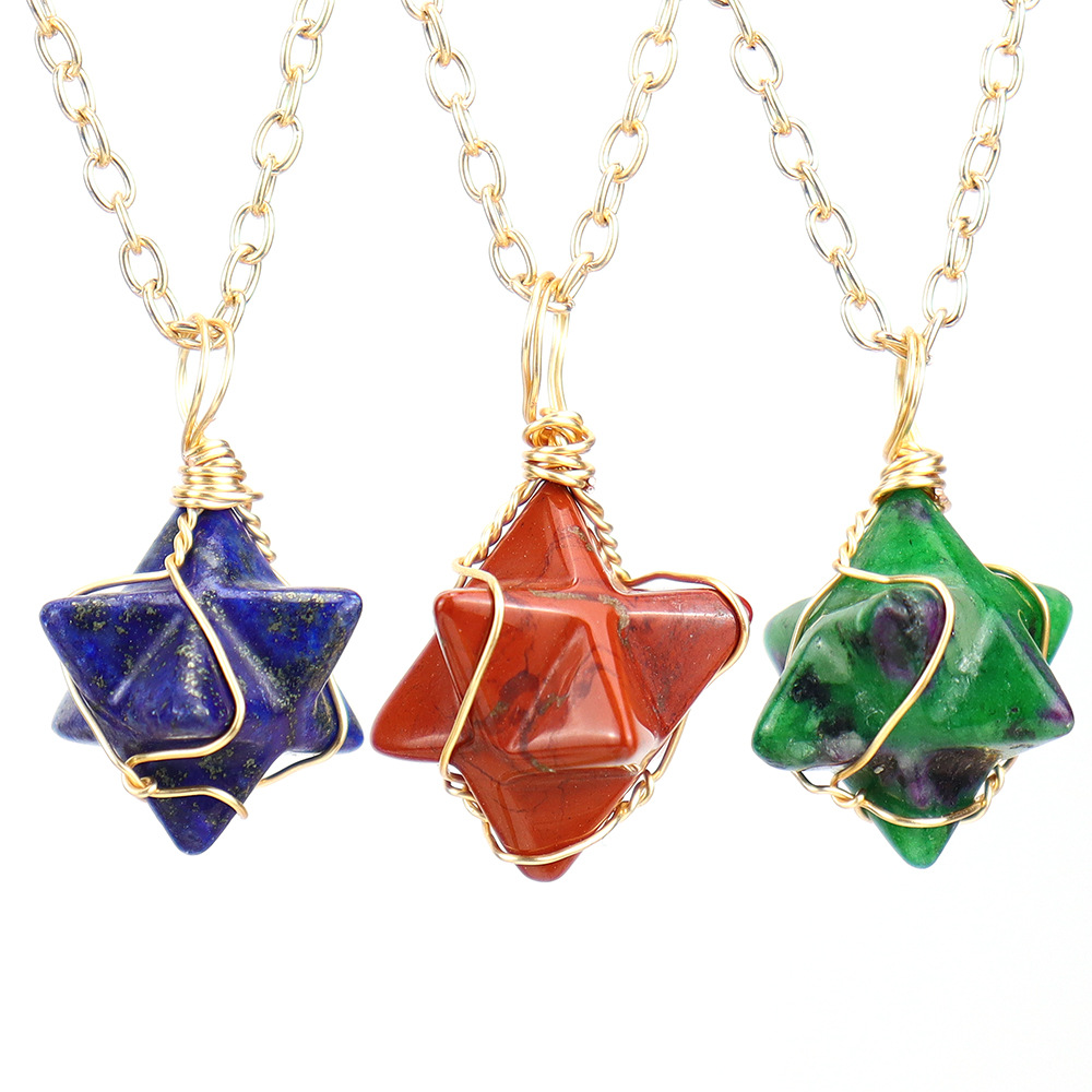 TikTok Live Golden Winding Natural Stone Crystal Kabba Star Onyx Star Spirit Pendant N636