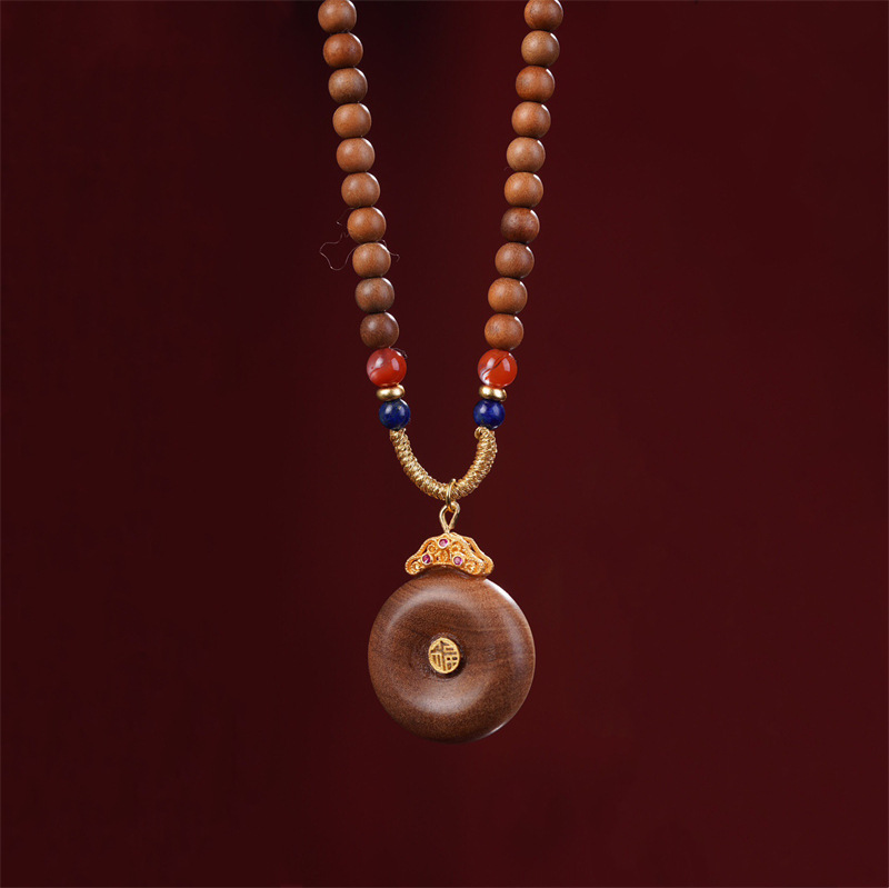 Wholesale Indian Old Mountain Sandalwood Auspicious Safety Buckle Necklace Vintage National Style Crafts Temperament Joker Pendant Necklace
