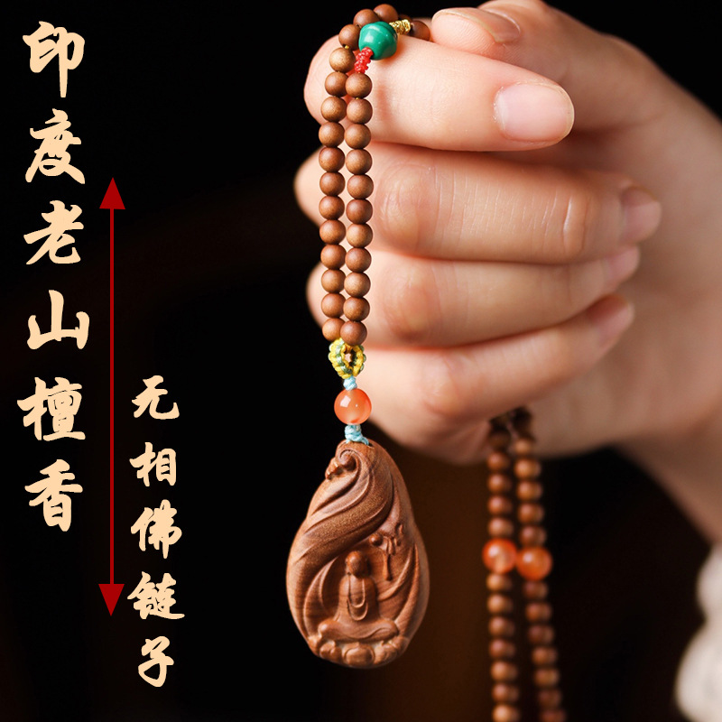 Indian Old Rosewood 4mm Bead Necklace Original Sandalwood Carved Non-phase Buddha Pendant National Style DIY Neck Hanging Accessories