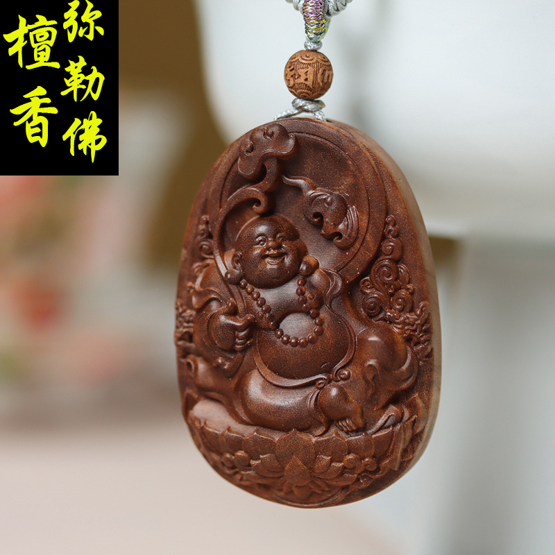 Indian Old Sandalwood Maitreya Original Wool Chain Hetian Jade Necklace New Chinese Style Sandalwood Carved National Style Jewelry