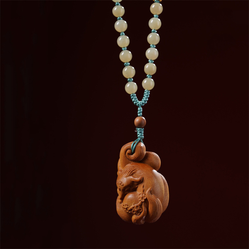 India Old Mountain Sandalwood Fox Fairy Phoenix Nine Necklace Sandalwood Retro Ethnic Style Pendant Necklace Wen Play Decorations Wholesale