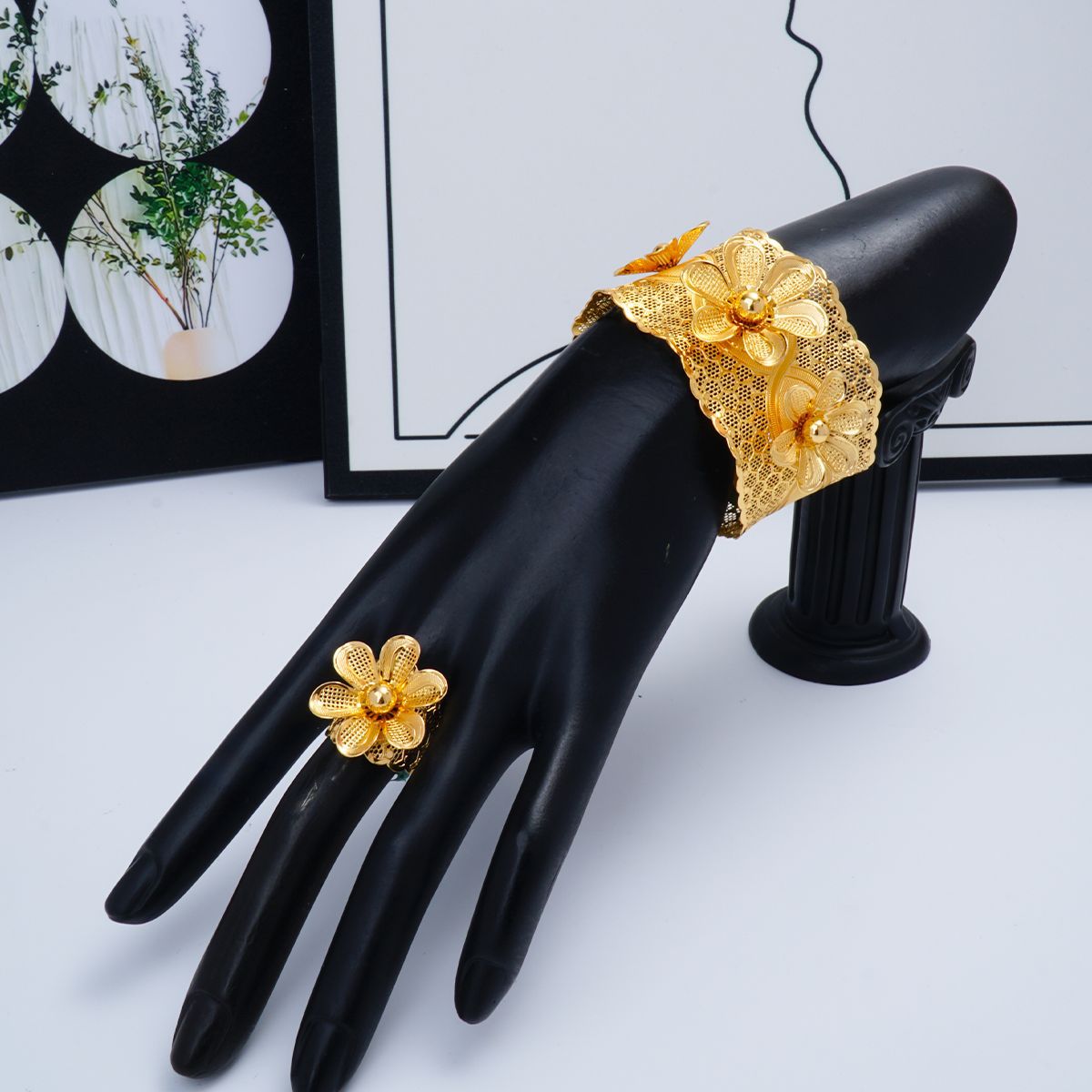 Hot Selling 24K Gold Plated Bangles Dubai Bridal Indian Nigerian Women Wedding Flower Bangles Jewelry Wholesale