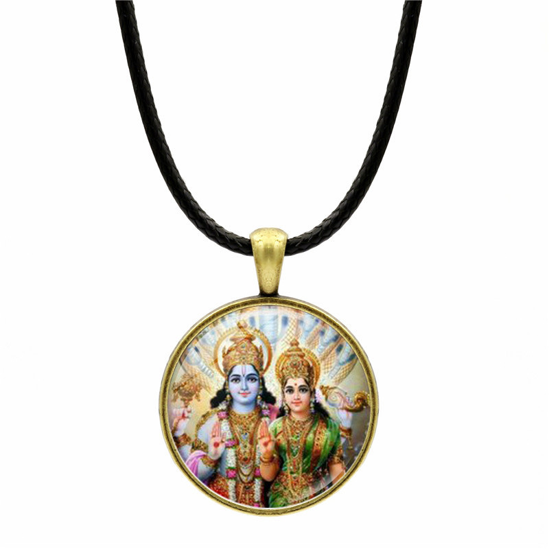 Cross-border new accessories Hindu god Vishnu and Lakshmi Time Gem leather rope necklace pendant