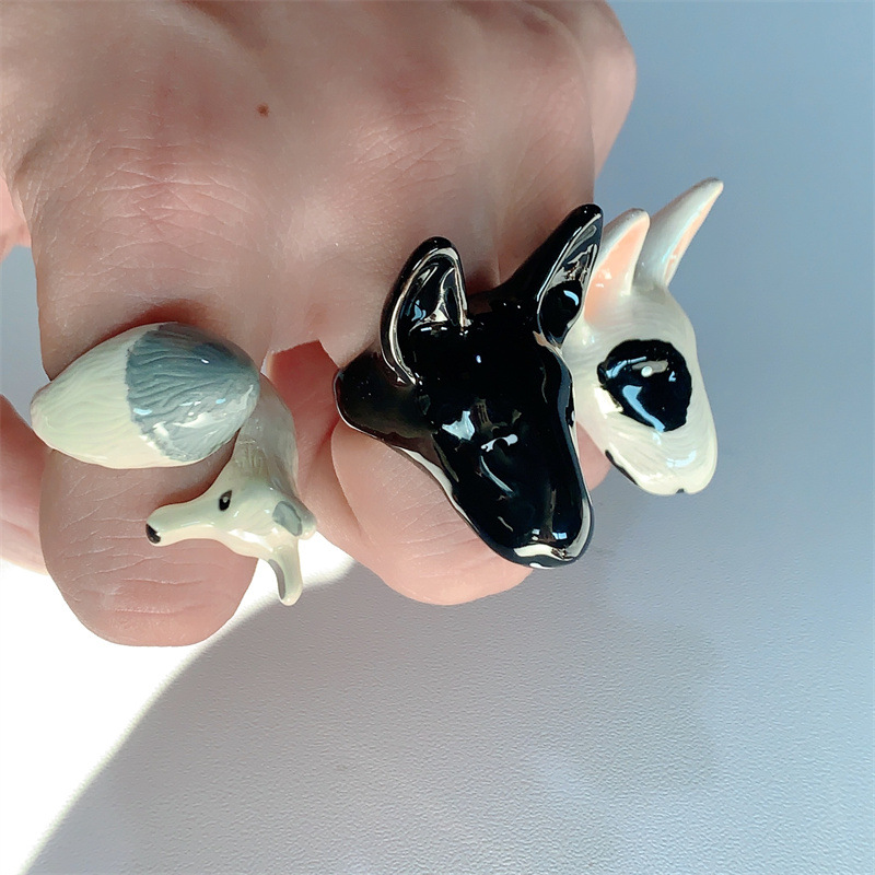 Niche Design Enamel Drip Glaze Ring Indian Elephant Ring Bull Terrier Ring Peppa Pig Exaggerated Stacking Ring