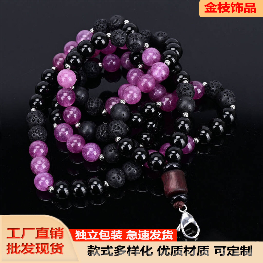 European and American Foreign Trade Hand-woven Double-row Amethyst Bracelet Natural Stone Beaded Bracelet Adjustable Jewelry for Men and Women