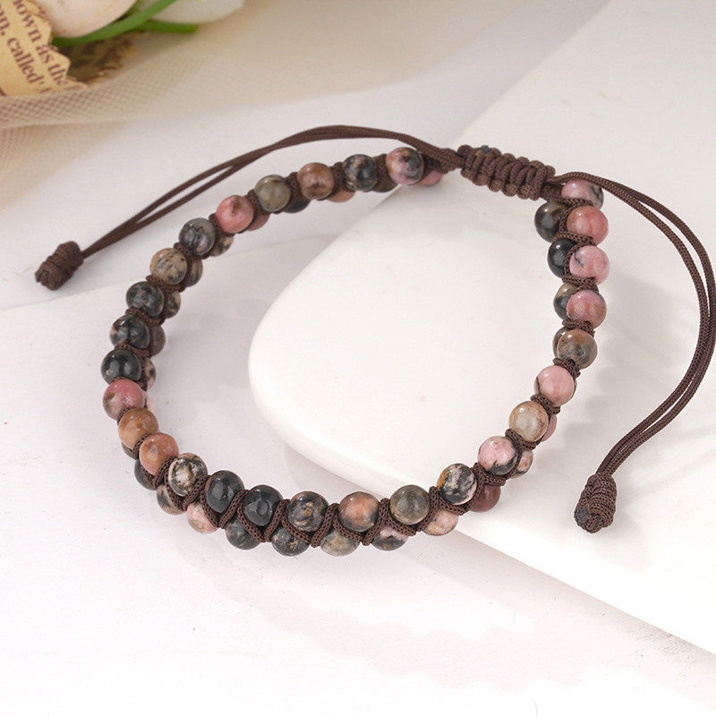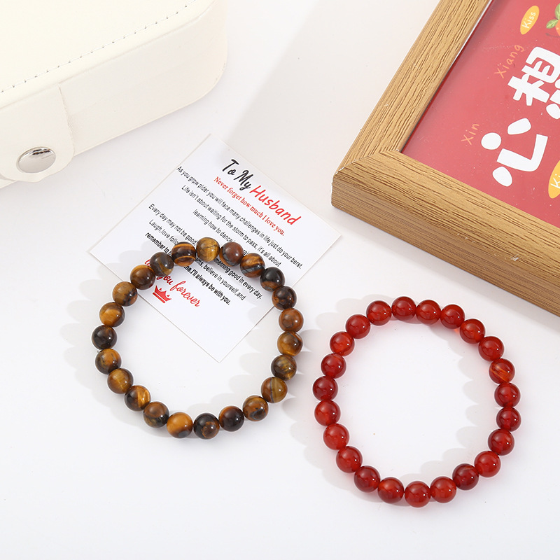 Natural Stone Bracelet Elastic Cord Beaded Bracelet Chrysoprase Agate Hand-Woven Rose Quartz Beaded Tiger Eye Stone Bracelet