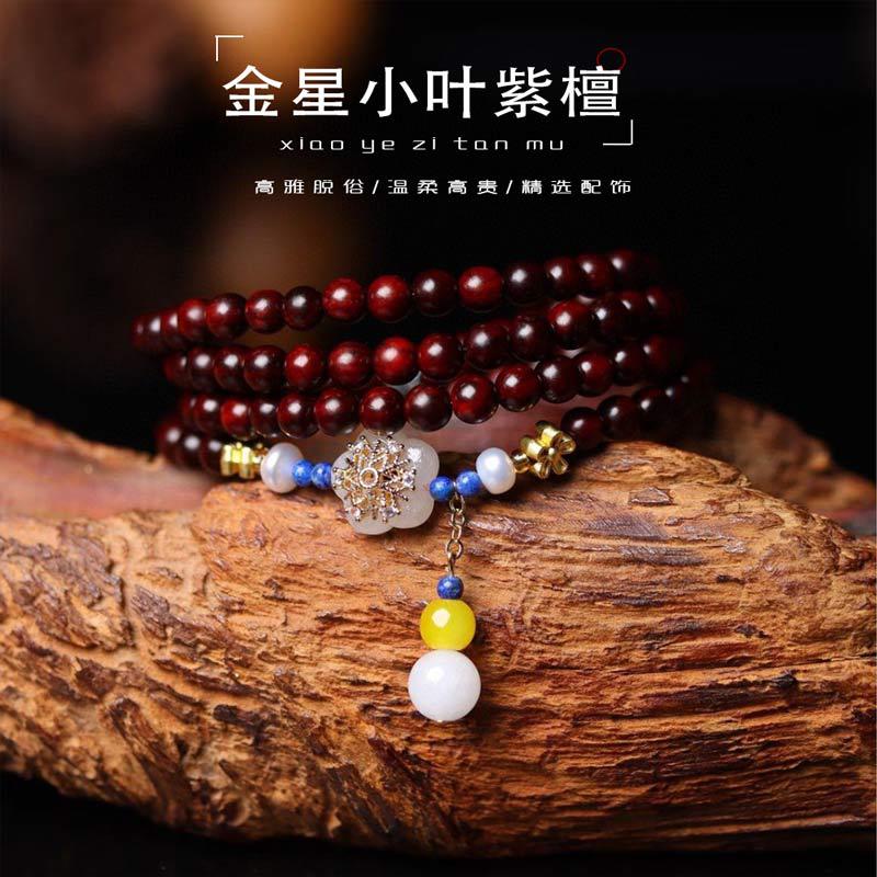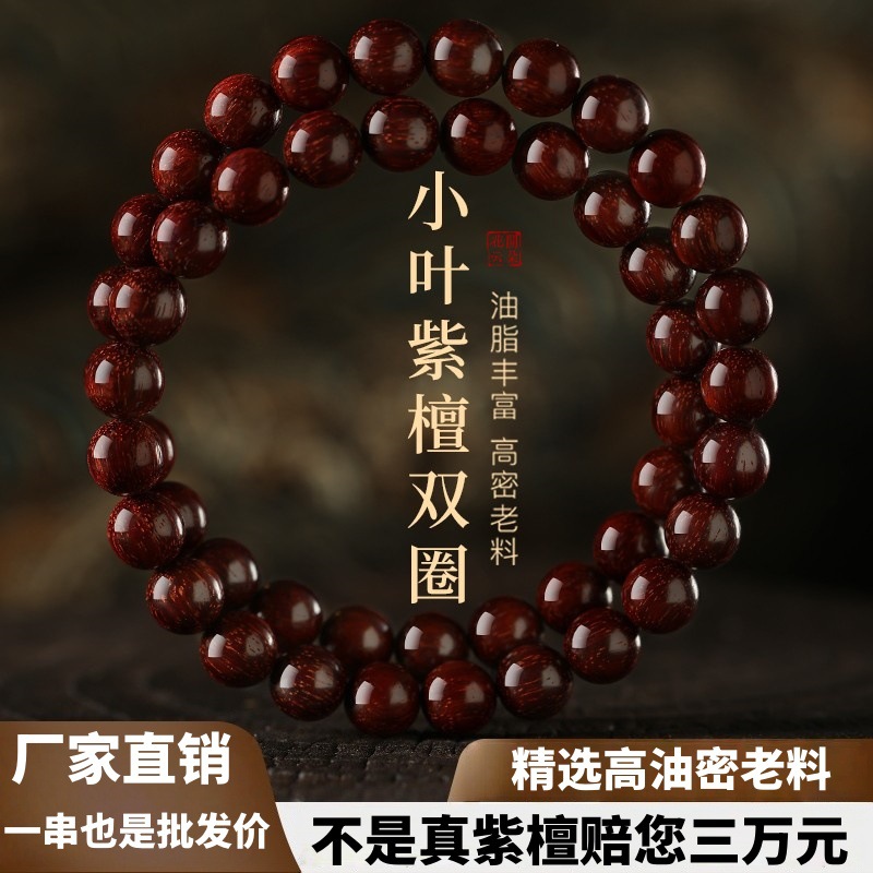 Natural Indian Small-Leaf Red Sandalwood Bracelet for Women, Double-Circle Wooden Bracelet for Men's Zodiac Year, Original Chinese Style Bracelet