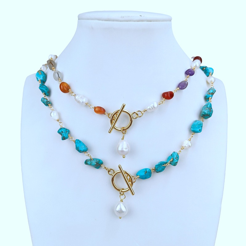 New Natural Stone Abacus Beads DIY Necklace Topaz Wheel Beads Clavicle Chain Pearl Necklace Wholesale Jewelry
