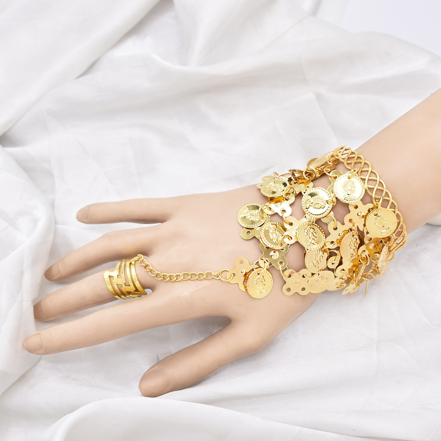 Exotic Style multi-layer portrait coin bracelet retro inverted triangle ring integrated chain Indian dance performance hand back chain