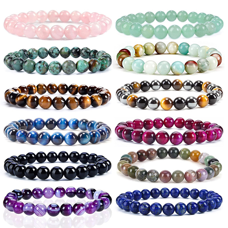 Cross-Border Popular Natural Stone Bracelet 8mm Amethyst Sunstone Lapis Lazuli Tiger Eye Agate Crystal Green Aventurine Bracelet