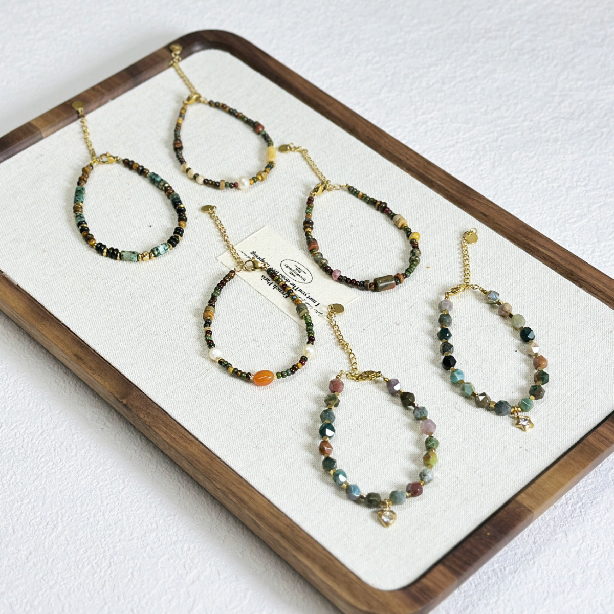 New Original niche design creative natural tea crystal bracelet ins retro artistic letter Indian agate bracelet