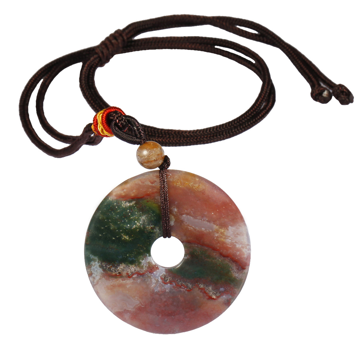 Natural Crystal Jade Peace Buckle Pendant Necklace Brown Adjustable Nylon Rope Crystal Peace Buckle Men's and Women's Jewelry