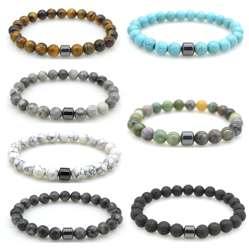 8mm bracelet diy Miscellaneous Stone men ran stone beads bracelet men White turquoise elastic bracelet foreign trade k86s